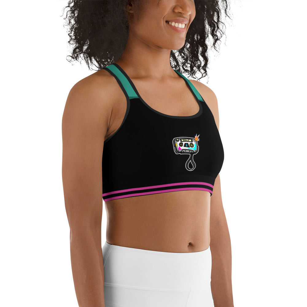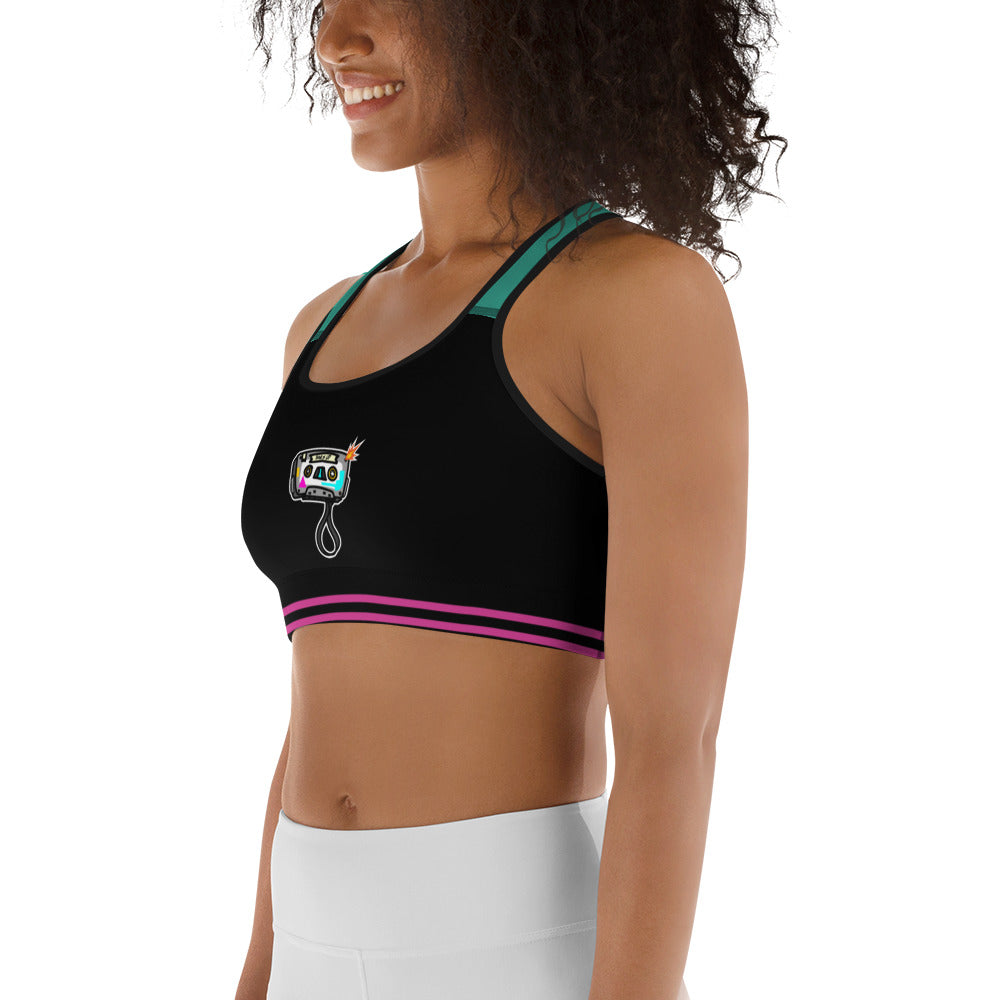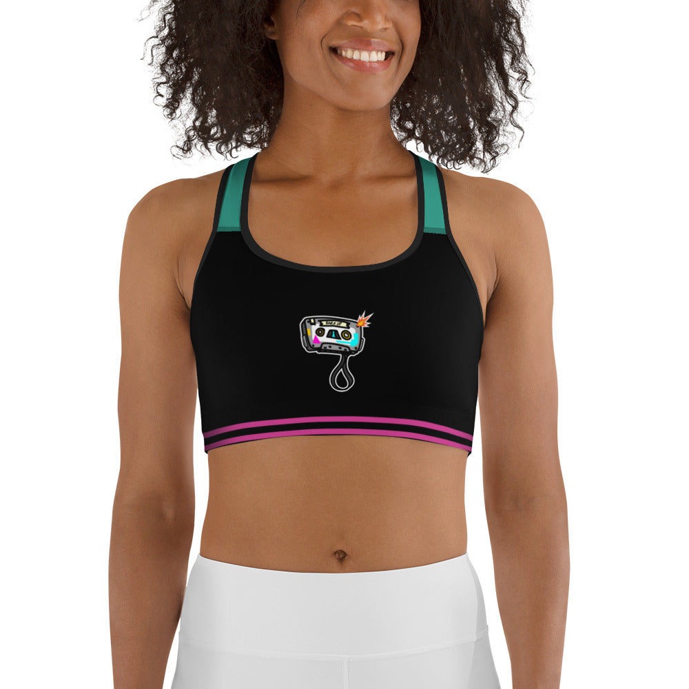 Women's Medium Support Racerback Sports Bra - TAPE POP BLACK GREEN