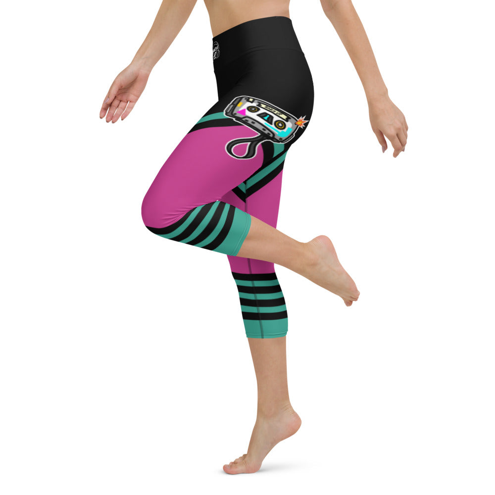 Womens Capri Leggings Casual Graphic Yoga Pants - TAPE POP PINK