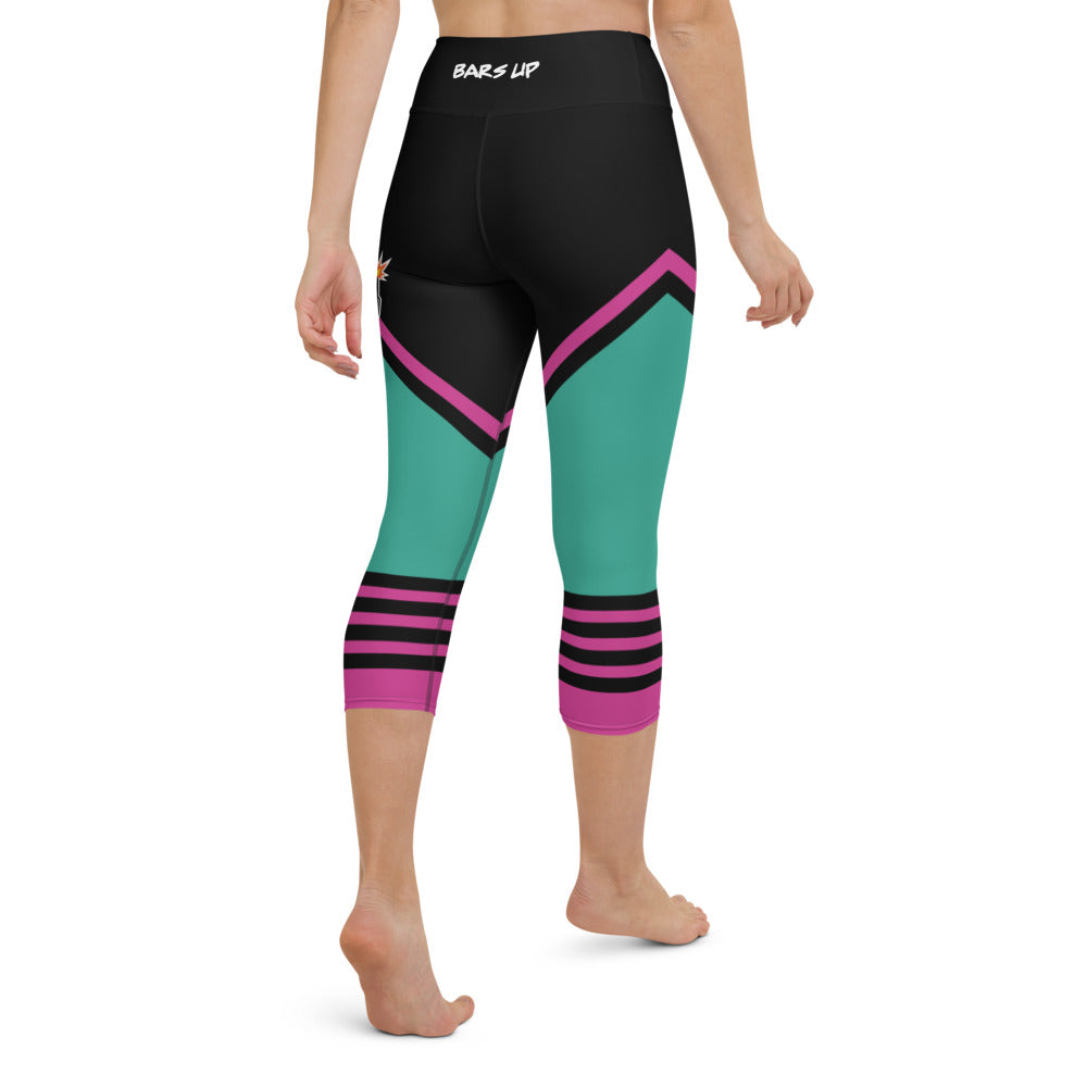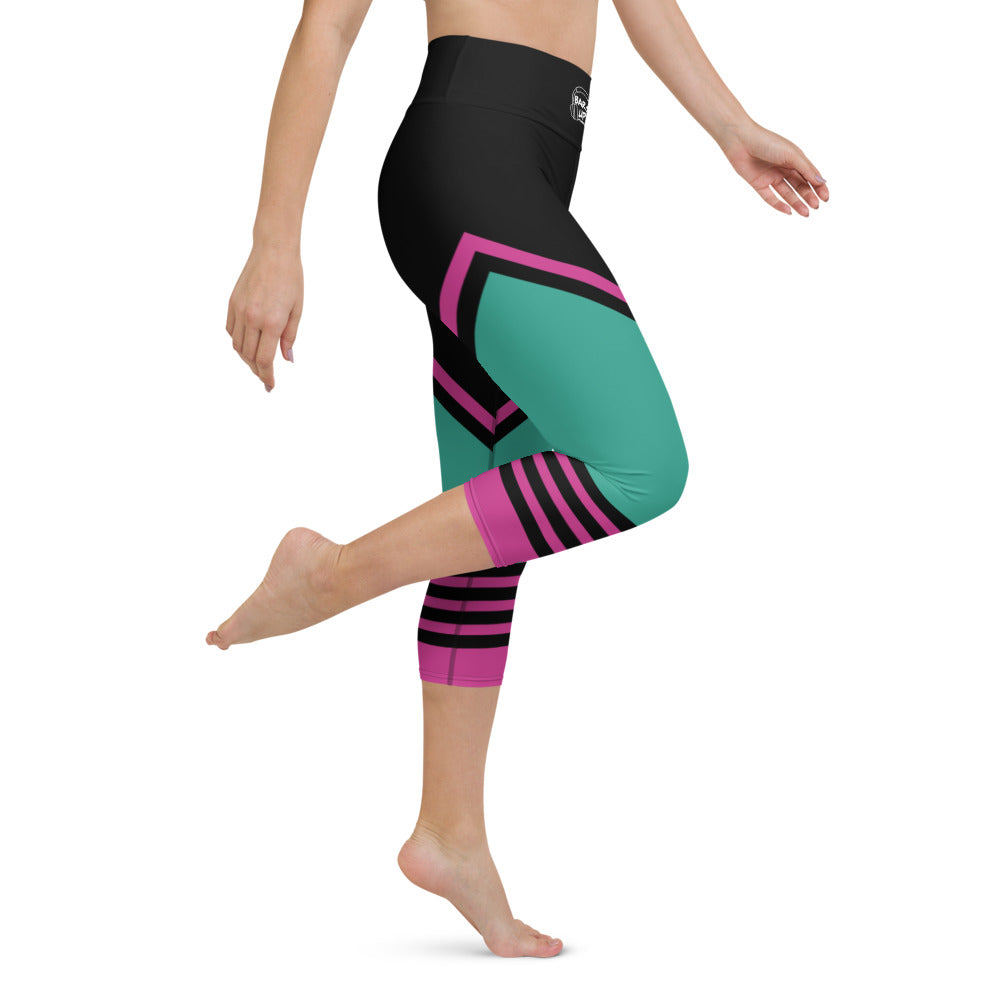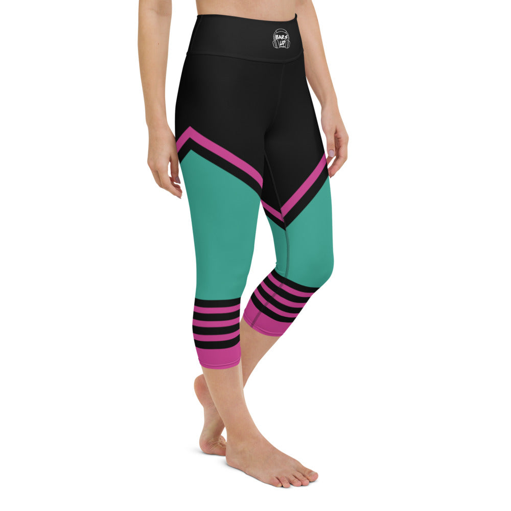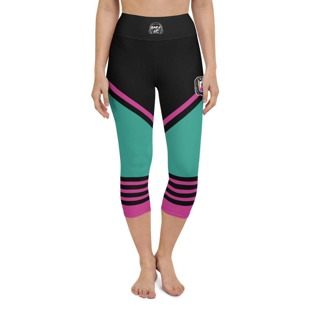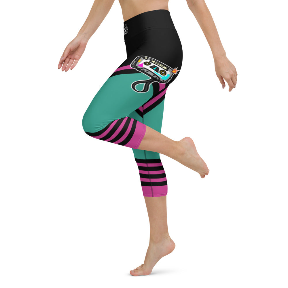 Womens Capri Leggings Casual Graphic Yoga Pants - TAPE POP GREEN