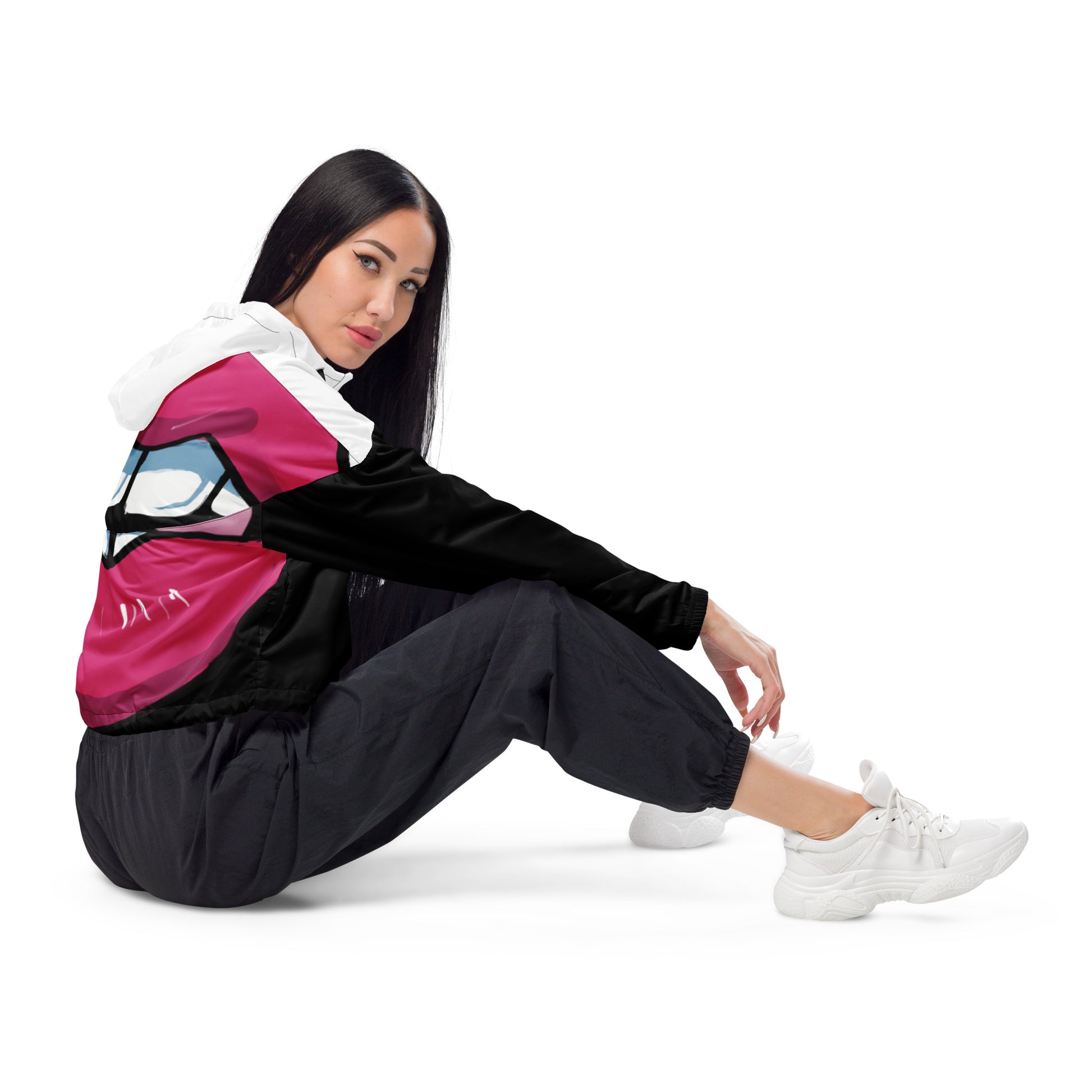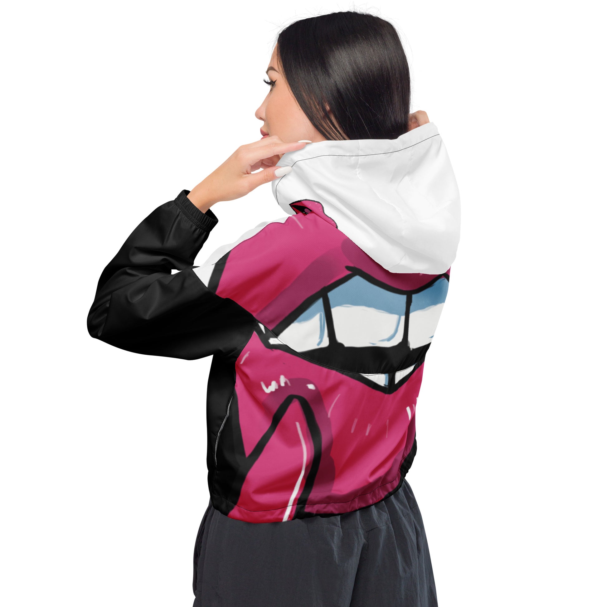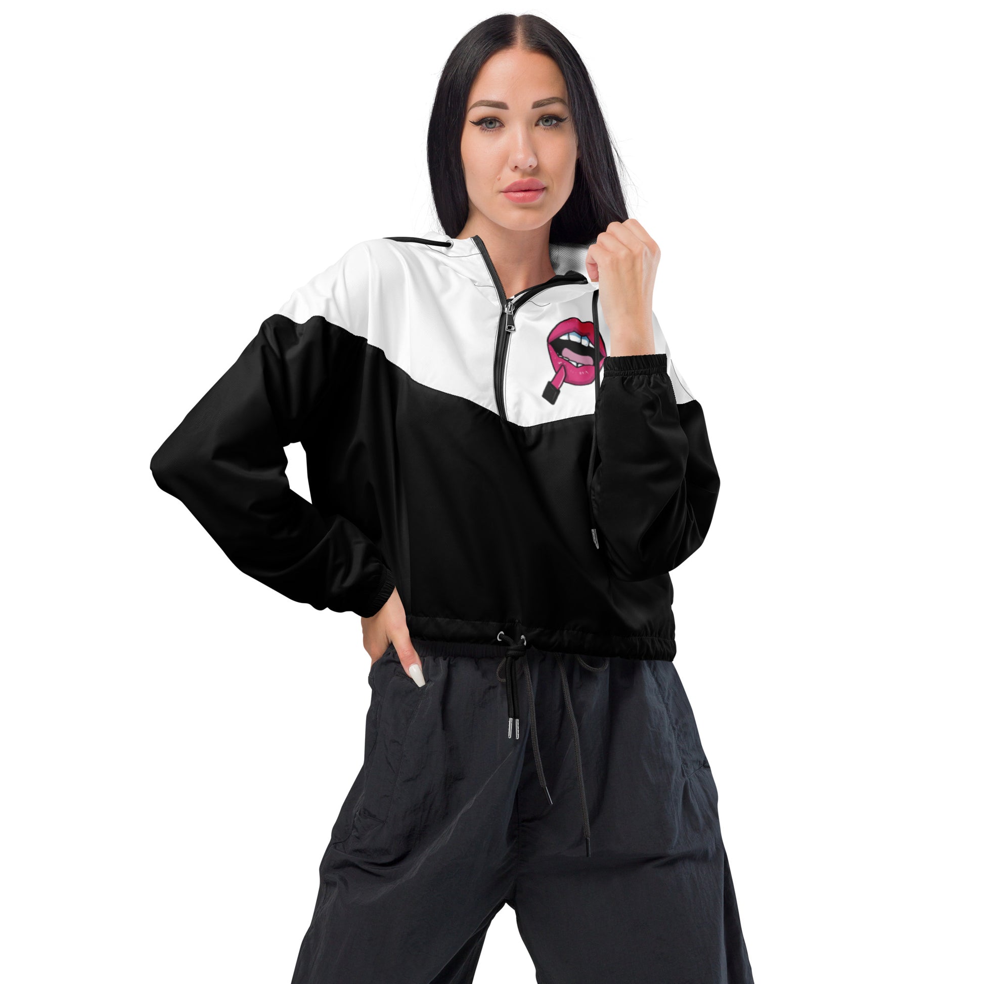 Women’s Novelty Graphic Cropped Windbreaker - Lipstick